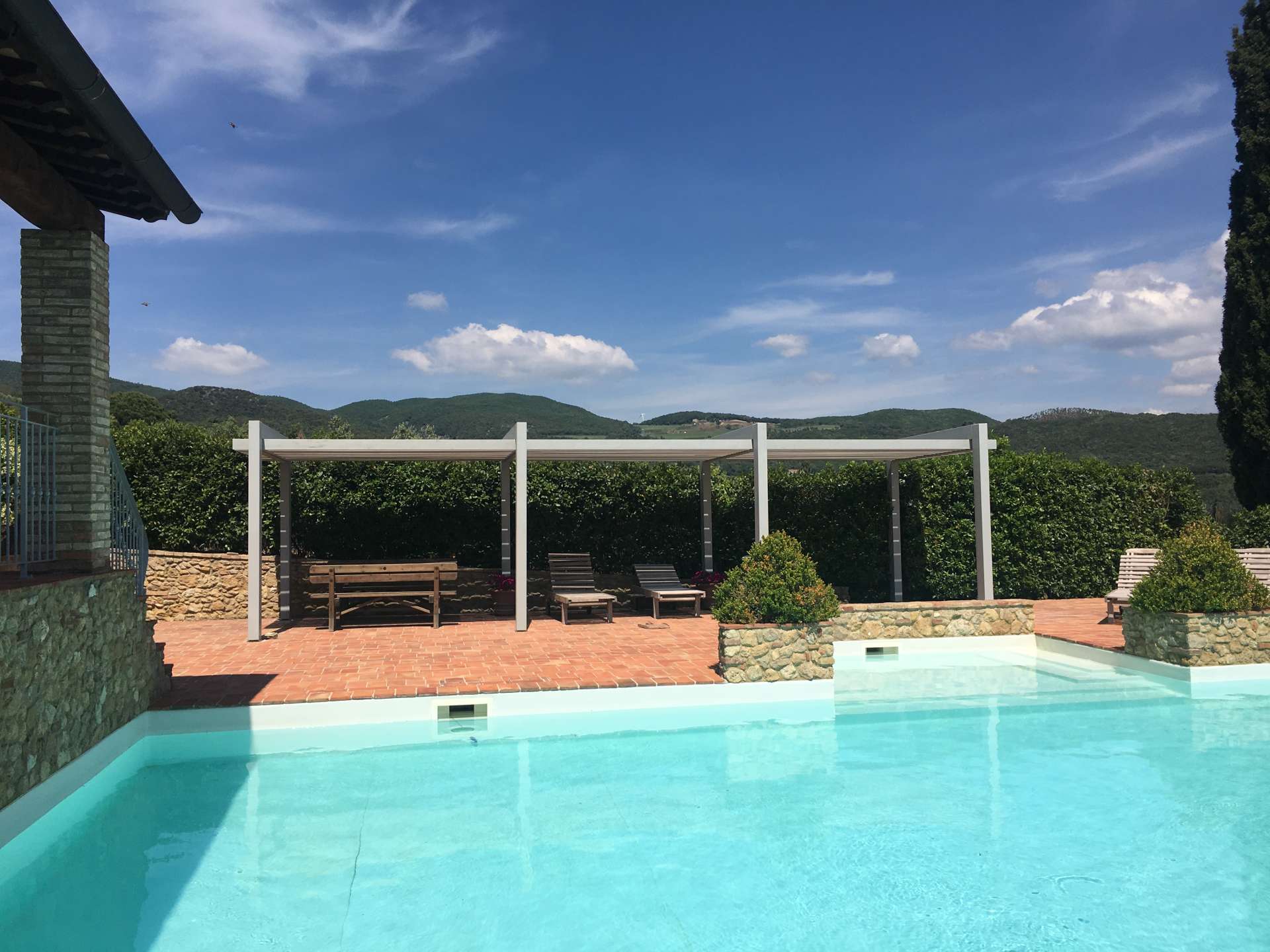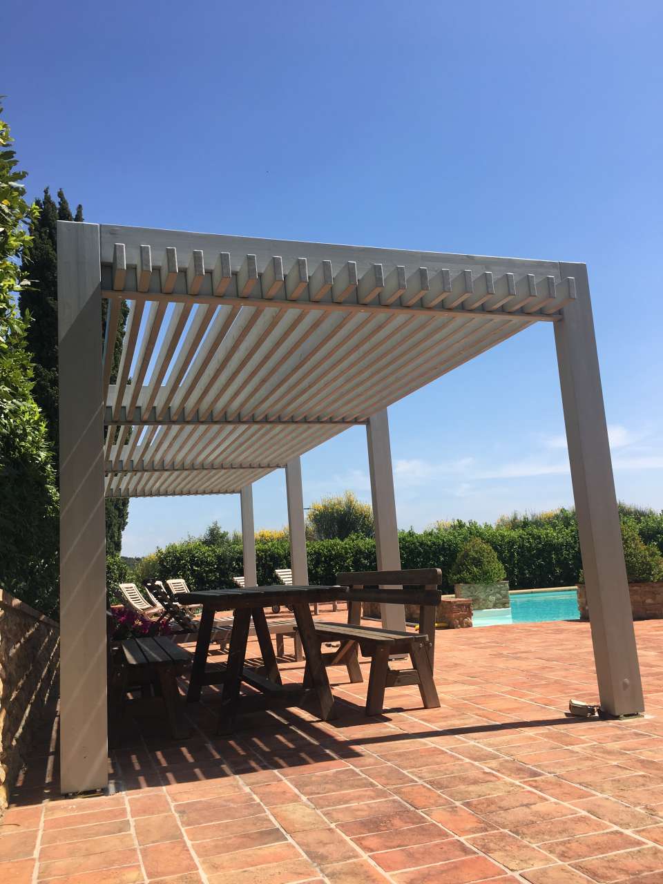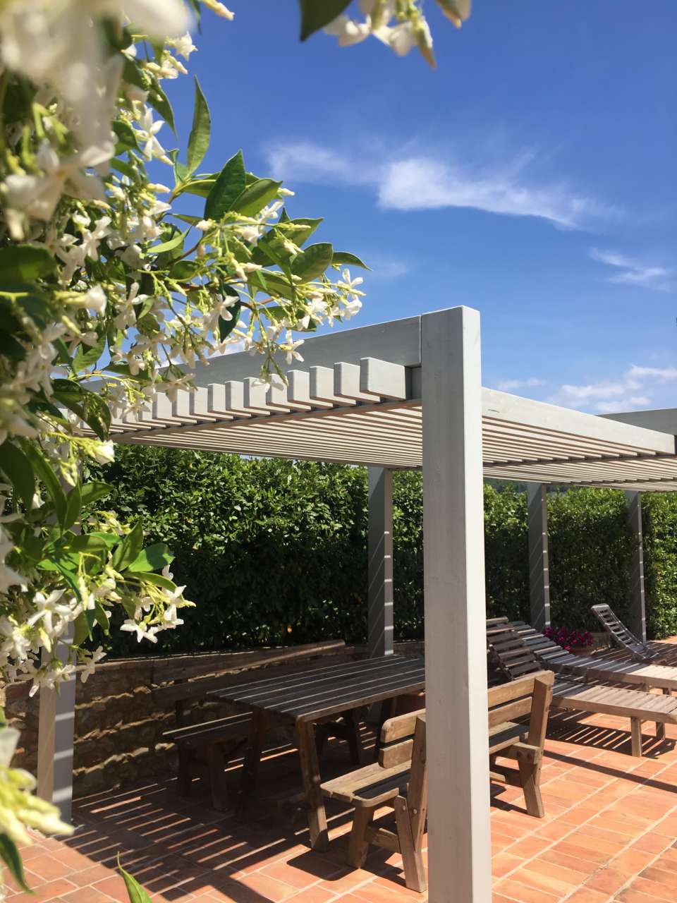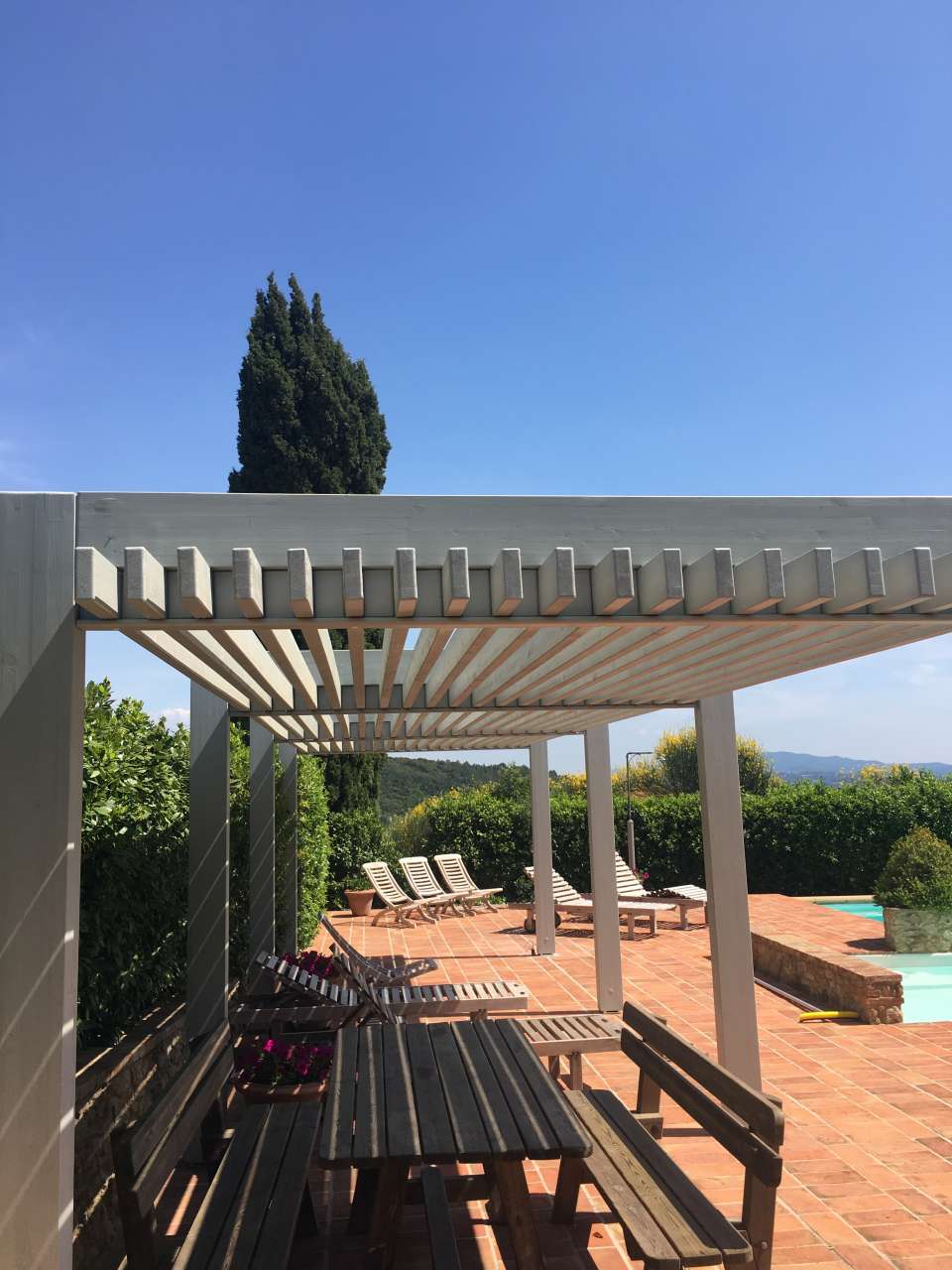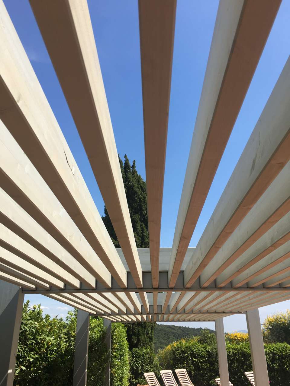 Pergolato in legno impregnato in autoclave, verniciato con impregnante all'acqua